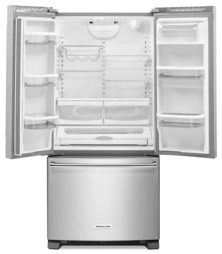 - KitchenAid 33″ 22.1 Cu. Ft. French Door Refrigerator with Internal Water Dispenser (KRFF302ESS) – Stainless Steel